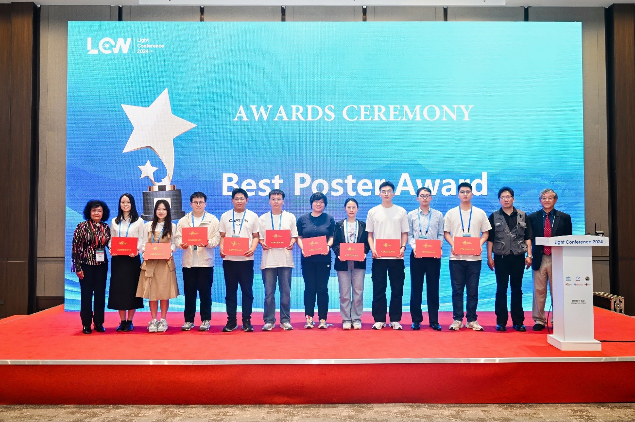 在闭幕式上揭晓了大会优秀论文奖与优秀海报奖并举行了颁奖典礼。 原科技部副部长、Light创刊主编曹健林,中国工程院院士、长春光机所所长、大会共主席张学军为10位优秀论文获奖者代表颁奖;中国科学院长春分院分党组书记、院长、长春光机所党委书记金宏,俄罗斯科学院院士、罗蒙诺索夫莫斯科国立大学教授Alexander Shkurinov,欧洲科学院院士、欧洲科学与艺术院院士、东南大学首席教授李全,德国耶拿大学教授Richard Kowarschik,美国西北大学讲席教授、大会共主席Manijeh Razeghi,Light执行主编、清华大学教授孙洪波为30位优秀海报奖获奖者颁奖。