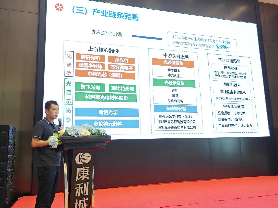 龙岗区科技创新局创新平台科副科长黄伟楠现场从区位优势、产业优势、扶持政策三个方面,分享了龙岗区光载信息产业发展的优越环境。
