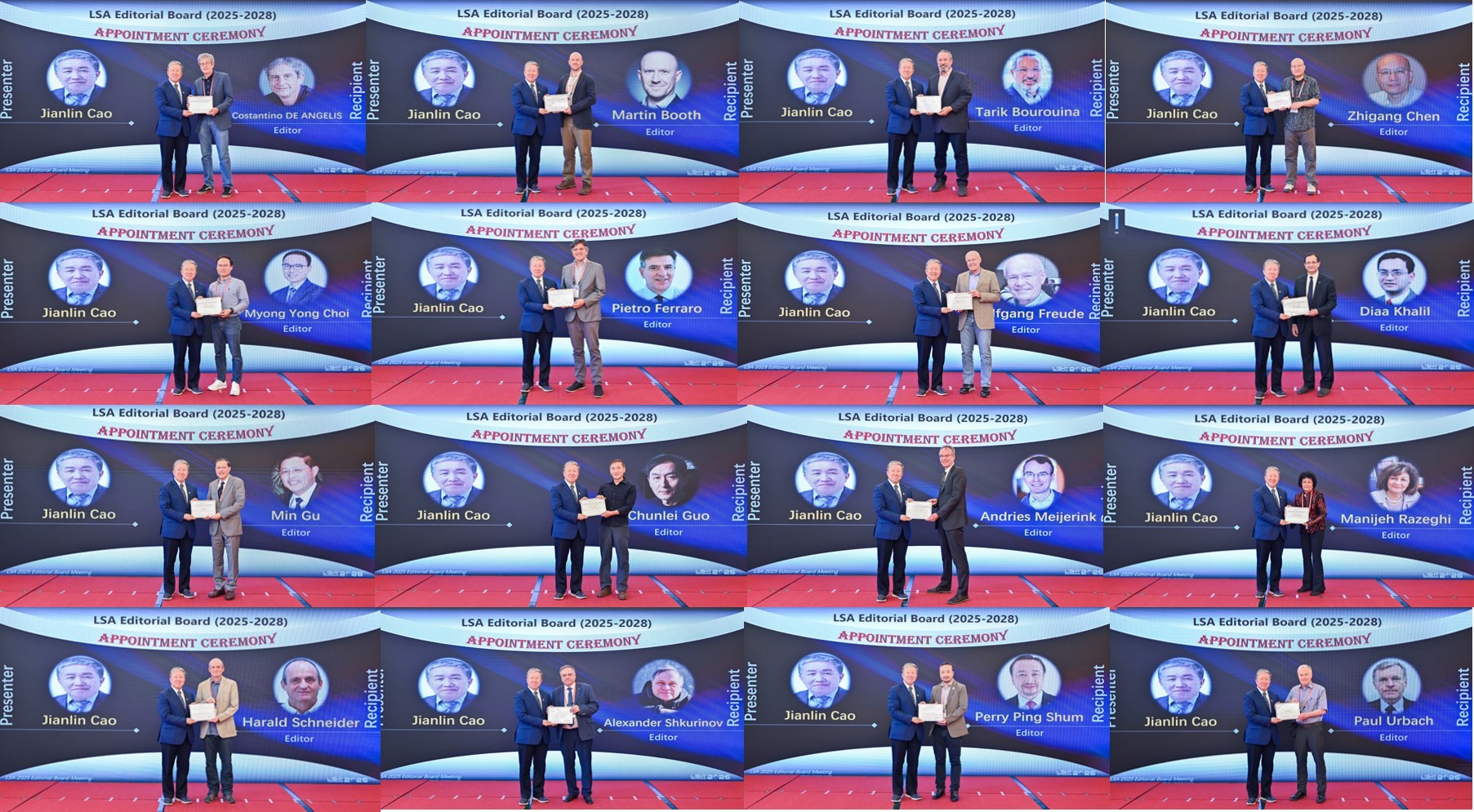 大会期间,Light 2025年编委会暨2025-2028年度编委及Light全球办公室换届/聘任典礼成功召开。本次会议由中国科学院长春光机所副总师、研究员、Light执行主编白雨虹主持,来自十余个国家的40余位编委会成员、区域办公室负责人及编辑部成员与会共谋期刊发展蓝图。会议伊始,中国科学院长春分院分党组书记、院长、长春光机所党委书记金宏代表主办方致欢迎辞。他对期刊的发展表示了高度肯定,期刊创刊以来,年投稿量、发文量持续增长,影响力不断提升,这一切成果离不开全体编委会、全球区域办公室成员的卓越贡献。他表示未来将持续通过基础设施升级、开放获取计划及全球合作支持期刊建设,诚邀编委建言发展路径,并深化与长春光机所的创新合作。Light创刊主编曹健林和金宏书记分别为到场的新一届编委会成员及Light全球办公室负责人颁发了聘书,标志着新一届编委会正式成立。