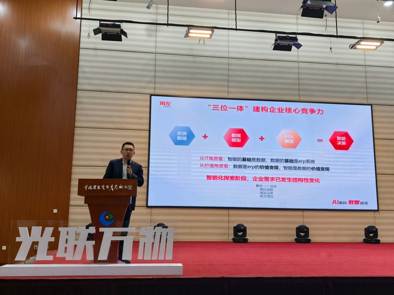 专题培训环节,用友集团解决方案咨询专家滕飞、用友吉林分公司售前总监苗立民先后围绕“数智化时代企业AI工具选型与效率提升”“让AI融入核心业务—企业AI全场景落地”做主题分享。两位专家结合主流AI工具与本地企业转型实践,系统讲解了AI选型原则、场景拆解与落地路径,帮助企业破解“选型迷茫、场景不清、落地低效”等现实痛点。