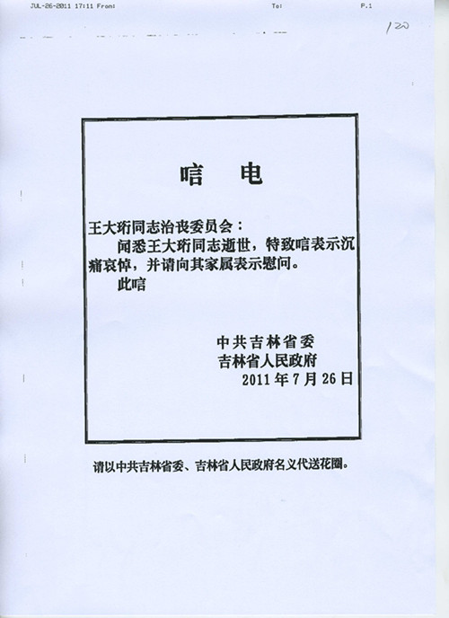 中共吉林省委、省政府唁电