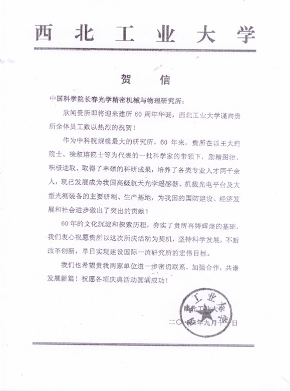 | 西北工业大学贺信 |