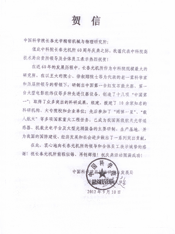 | 中国科学院电子学研究所贺信 |