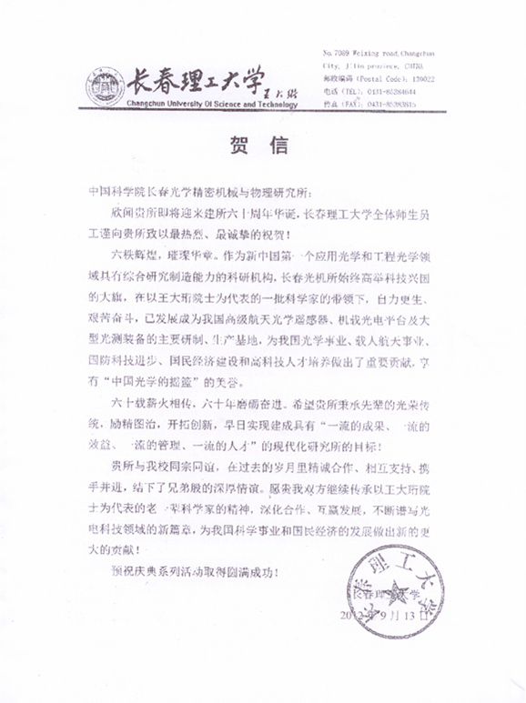 | 长春理工大学贺信 |