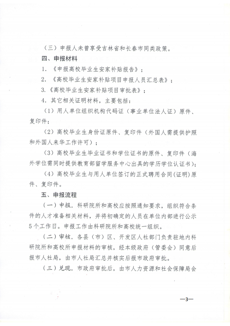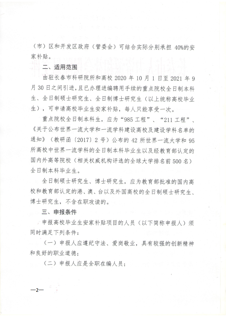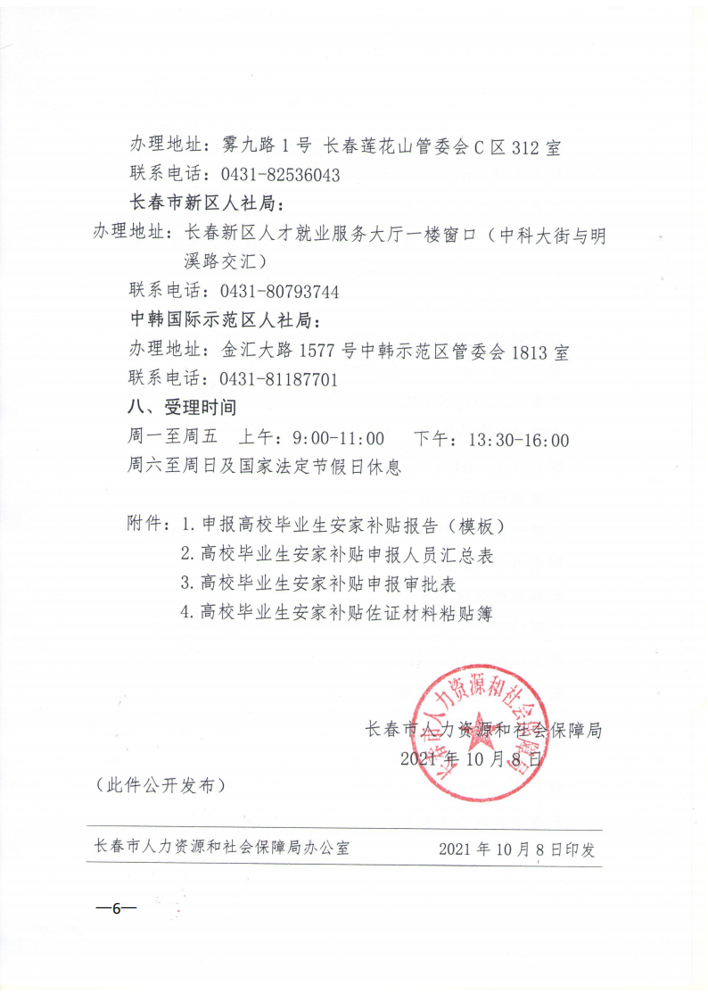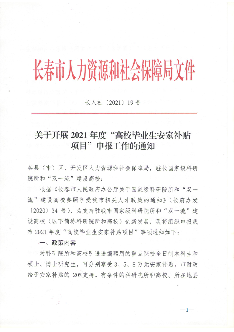 关于实施2021年度“高校毕业生安家补贴项目”申报工作的通知(长人社【2021】19号)