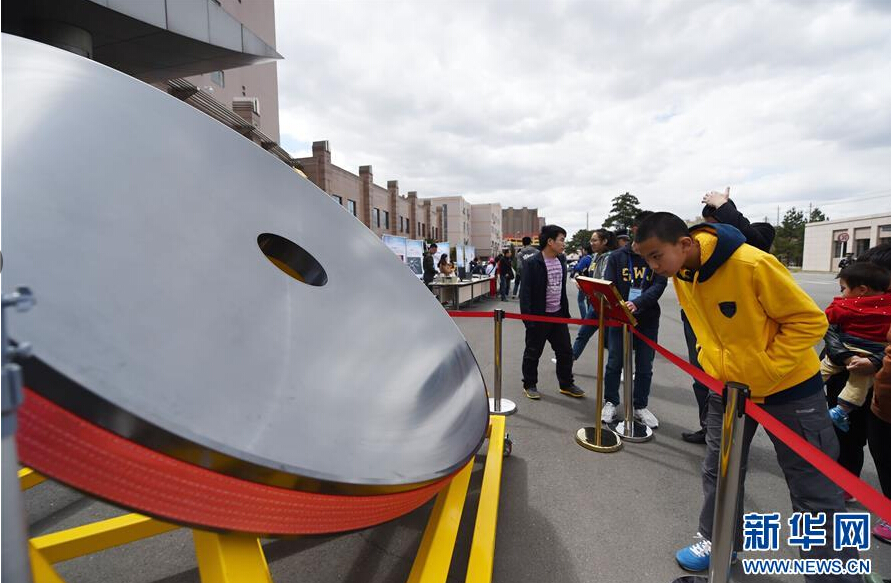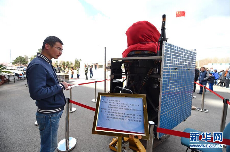 4月23日,市民在长春光机所参观展出的“吉林一号”卫星初样,它是我国第一颗自主研发的星载一体化商用卫星。新华社记者 张楠摄