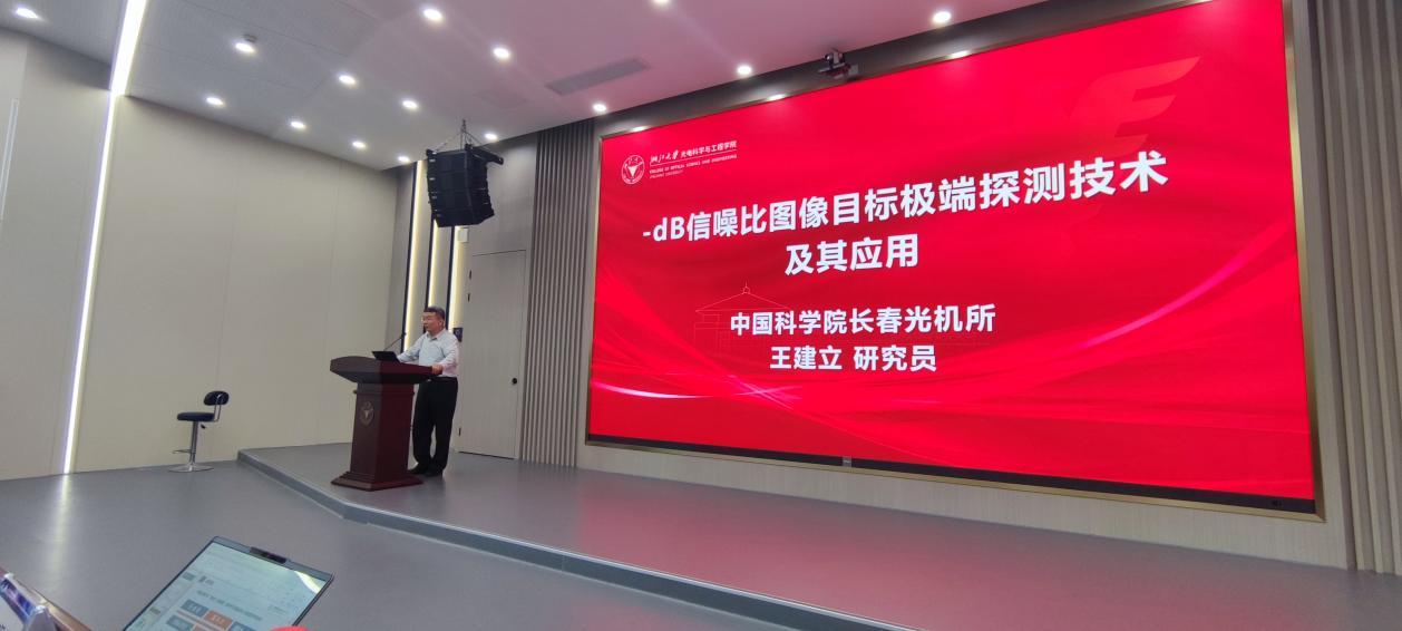 王建立首先以“-dB信噪比图像目标极端探测技术及其应用”为题,向同学们介绍了在极低信噪比条件下实现微弱目标探测的关键技术及典型应用场景。