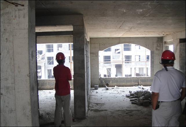 目前绝大栋号完成封顶,正在进行砌筑施工。剩余栋号预计6月26日全部完成封顶,然后开始墙体砌筑施工。按照认购书要求,六月底即将进行第二次交款。预计七月初,建筑主体的施工将初步完成,下一步将进行室内装饰、布线及外网道路的施工。