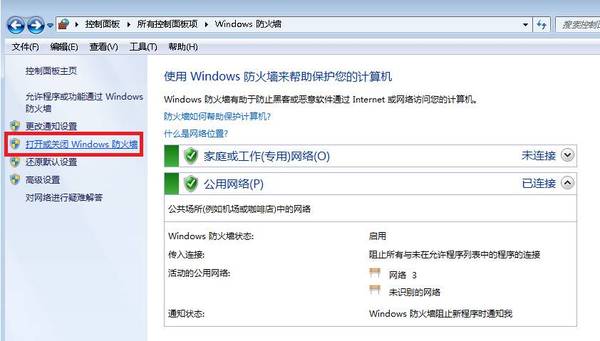 1、打开控制面板-系统与安全-Windows防火墙,点击左侧启动或关闭Windows防火墙