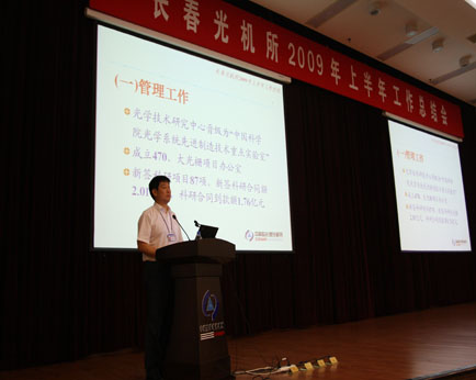 7月13日下午,长春光机所召开2009年上半年工作总结会。会议由所党委书记、副所长贾平主持,所长宣明作总结报告。所务会成员、院士、所各级各类组织成员,研究、管理、支撑、产业系统各单位党政负责人、工会主席、研究员、副研一级岗和青年代表参加了会议。