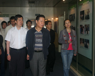 张昌尔一行参观了所展厅、空间实验场地和希达公司。在参观希达公司全彩色LED显示屏时,张昌尔主席详细了解了该产品关键技术指标和市场开发前景,希望促成双方在此领域的合作。
