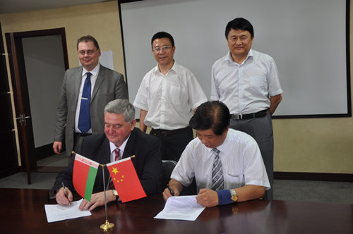 长春市与白俄罗斯首都明斯克市是友好城市,会谈期间,孙国庆局长介绍了双方友好往来和成果颇丰的国际科技交流与合作活动。双方就如何推动和加强两地间的研究所、大学和工业界的合作进行了热烈的讨论。会上,沃伊托夫主任和孙国庆局长共同签署了合作框架协议。