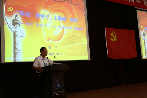 贾平指出,中国共产党从成立至今,始终走在时代的前列,为实现民族独立、国家富强、人民幸福披荆斩棘、攻坚克难。每个历史时期的优秀共产党员处处以身作则,身先士卒,率先垂范,在各项工作中走在群众的前面,给群众做出表率,成为群众学习的榜样。面对国家和人民的期盼,我们这一代科技工作者要勇担“率先”责任,以时不我待的紧迫感和舍我其谁的豪情壮志,矢志创新,肩负起推动我国科技事业实现跨越式发展的重任。围绕发展要“率先”,贾平指出,“率先”是我院65年发展历程中对我国科学技术发展贡献的价值体现,更是一种责任和担当,是几代人积累、传承的宝贵精神财富。我所也是通过“率先”改革,先行先试,走出了发展困境,找到了实现快速发展的道路。同样,个人和组织要想实现“率先”发展,就要有超前的思维,要有敢为人先的气魄,要有第一个吃螃蟹的精神,跟着别人走的最终结果一定是被淘汰或灭亡。