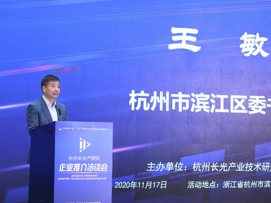 王敏在致辞中通过“期待、邀请、承诺”三个关键词表达对研究院未来工作、对两地合作的期望。他表示,长春光机所与高新区(滨江)双方充满诚意的合作态度,使杭州长光产业技术研究院的各项工作高效推进,此次的洽谈会是研究院的一个新的里程碑,他期待下一个“100天”,希望长春企业与滨江企业优势互补,不断开拓新领域,共谋新发展,滨江区将全力支持,加速推进产业发展。
