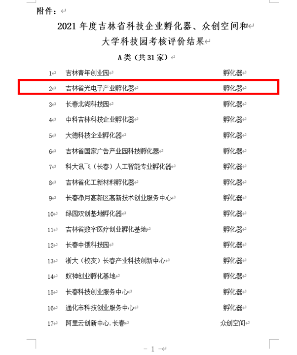 近日,科技部火炬中心、吉林省科学技术厅分别公布了国家级科技企业孵化器、吉林省科技企业孵化器2021年度评价结果,吉林省光电子产业孵化器(以下简称:孵化器)均获评“优秀A级”,这无疑是对孵化器一年来工作的极大肯定,也彰显了孵化器在光电子信息产业这片创业沃土上所焕发的实力。