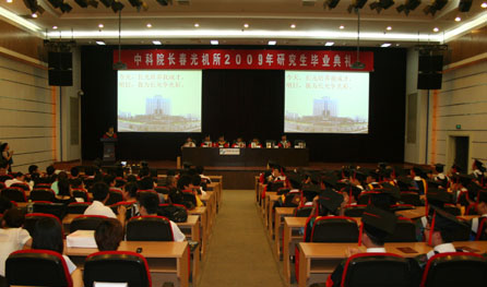 典礼在庄严的国歌中拉开序幕,申德振副所长发表讲话,他向即将踏上人生旅途的全体毕业生表示热烈的祝贺,并对他们寄予了殷切的希望,希望大家谨记长光所几十年的科研优良传统,将长光精神发扬光大。导师代表宣丽研究员总结了09届毕业生答辩情况,对本届毕业生所表现出的刻苦和努力给予了充分的肯定和赞扬,她对毕业生送上了全体老师的嘱托与祝福,希望他们永远把长光所当成自己的家。毕业生代表郝振东博士发言,他号召毕业生要积极进取,不辜负长光所的期望,为长光所增添光彩。08级凝聚态硕士全体成员向毕业生献歌,将典礼推向高潮。