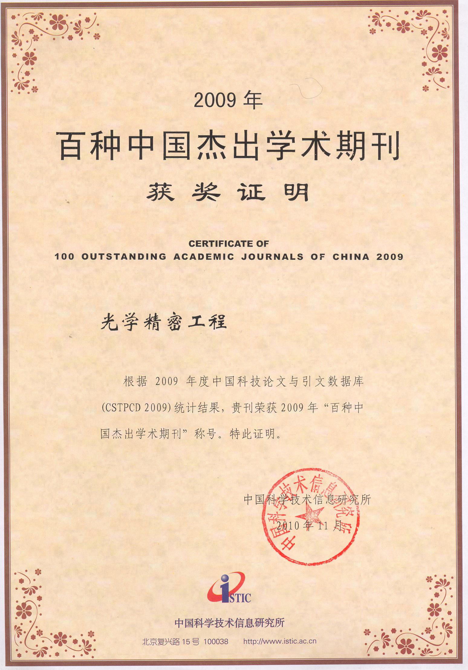 根据中国科学技术信息研究所最新发布的《2010年版中国科技期刊引证报告(核心版)》,长春光机所主办的期刊《光学 精密工程》综合评价总分为81.8,在1946种科技核心期刊中排名38,位列仪器仪表类期刊、光学类期刊第一名,并荣获了“2009年百种中国杰出学术期刊”称号。