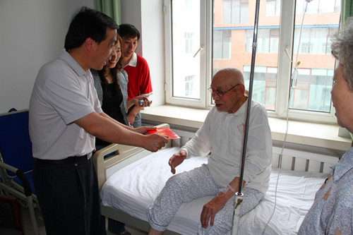 6月27日,在中国共产党建党90周年前夕,长春光机所党委委员、人事处处长杨洪波,所纪委委员、党办主任王晓慧,在所离退休中心同志的陪同下,走访慰问了原长春光机所党委书记、老红军李光,抗战时期入党的离休老干部师文泰、王裕钊、赵开义,90岁的老党员南奎升等五位老干部,给他们送去了党组织的关怀和全所职工的祝福,衷心祝愿他们健康长寿,阖家幸福。