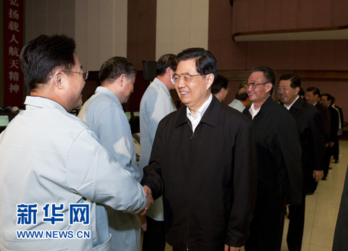 北京时间9月29日21时25分45秒,我国自主研制的天宫一号目标飞行器发射升空后准确进入预定轨道。胡锦涛、吴邦国、贾庆林、李长春、习近平、李克强、周永康等领导同志在北京航天飞行控制中心观看发射实况,对天宫一号目标飞行器发射成功表示热烈祝贺,向为此作出贡献的广大科技工作者、干部职工和解放军指战员表示亲切慰问。新华社记者 李学仁 摄