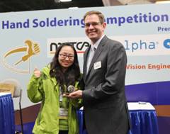 2013年2月19日~21日,国际电子工业互联协会(IPC)在美国圣地亚哥举办首届IPC 手工焊接国际锦标赛。本届大赛中,由中科院长春光机所选派的中国选手王鹤以其精湛的技能和规范的操作手法获得了评委的一致好评,最终获得季军!