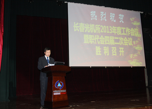 2013年3月5日上午,长春光机所2013年度工作会议暨职代会四届二次会议在长春国际会展中心大饭店音乐厅胜利召开。来自科研、产业、管理与支撑、研究生各方面代表500余人参加了会议。所党委副书记、纪委书记、副所长马明亚主持会议。