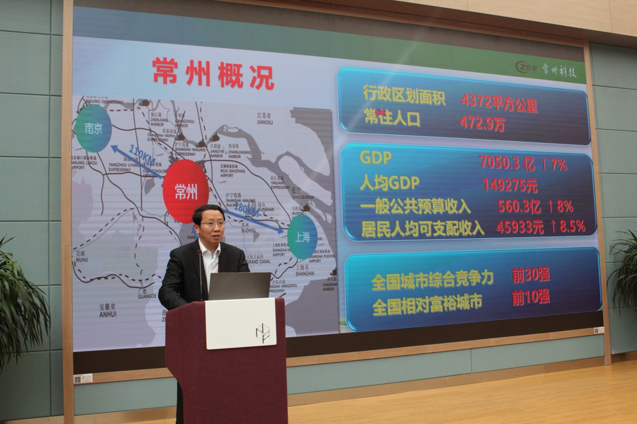 常州市科技局副局长张朝晖介绍了常州新能源、新材料、智能制造等十大产业链及当地创新扶持政策,并向长春光机所与会人员发出常州“5·18展洽会”、“6·20世界工业和能源互联网博览会”参会邀请。