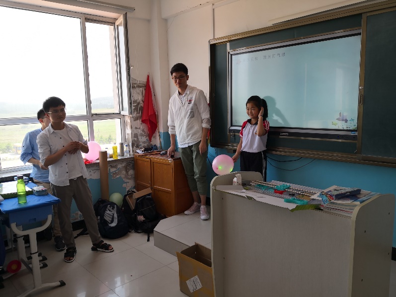 上午,科普团队坐车到达了九台区加工河中心学校。科普团队为四年级一班的学生们安排了两个有趣的光学实验,分别是“小孔成像”实验和“激光打气球”实验。利用“小孔成像”实验让学生们对光的直线传播原理有了初步了解,同时通过实验平台的搭建加强他们的动手能力。利用“激光打气球”实验,让学生们了解了什么是激光、注意防范激光对人眼的伤害以及人眼感知颜色的原理有了感性的认识。