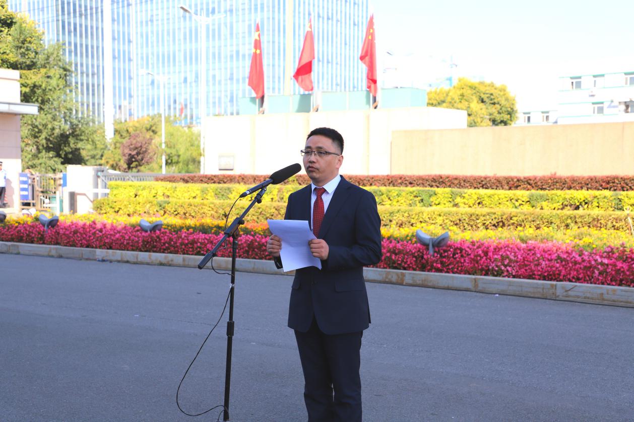 上午9时30分,升旗仪式正式开始。由所警队组成的护旗手方队迈着铿锵有力的步伐,护送国旗行至升旗台。伴随着雄壮的《义勇军进行曲》,升旗手振臂一挥,鲜艳的五星红旗冉冉升起。全体职工庄严肃立,面向国旗行注目礼,向伟大祖国表达深深的祝福和崇高的敬意。升旗仪式结束后,吉林省优秀青年、吉林省拔尖创新人才、吉林省直机关五一劳动奖章获得者、光学技术中心主任薛栋林作为科研骨干向全所科研人员发出倡议。倡导在新时代继承和发扬老一辈科学家坚持国家利益和人民利益为上,自力更生、艰苦奋斗的优秀品质,坚定敢为人先的自信和勇气,在解决受制于人的重大科学问题上强化使命、担当、作为。从我做起,大力弘扬新时代科学家精神,传承优良学风和作风,刻苦钻研,勇攀高峰,为早日实现世界科技强国目标而不懈奋斗。