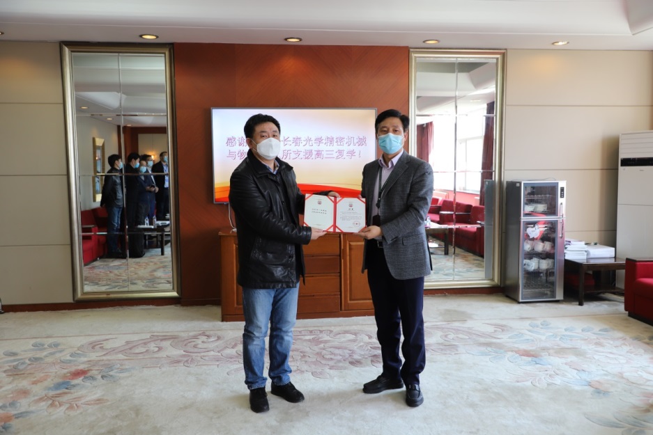 会上,邵志豪校长首先对长春光机所的慷慨捐赠表示衷心的感谢,并表示使用医疗级智能体温筛查系统后,大大提高了学校师生入校时体温筛查的效率,极大缓解师生在门口排队等待体温测量问题,为学校疫情防控的开展和顺利复课提供了有力保障。同时,提出了在科普活动、创新人才培养、学生研学实践活动等方面与我所开展合作的期望。