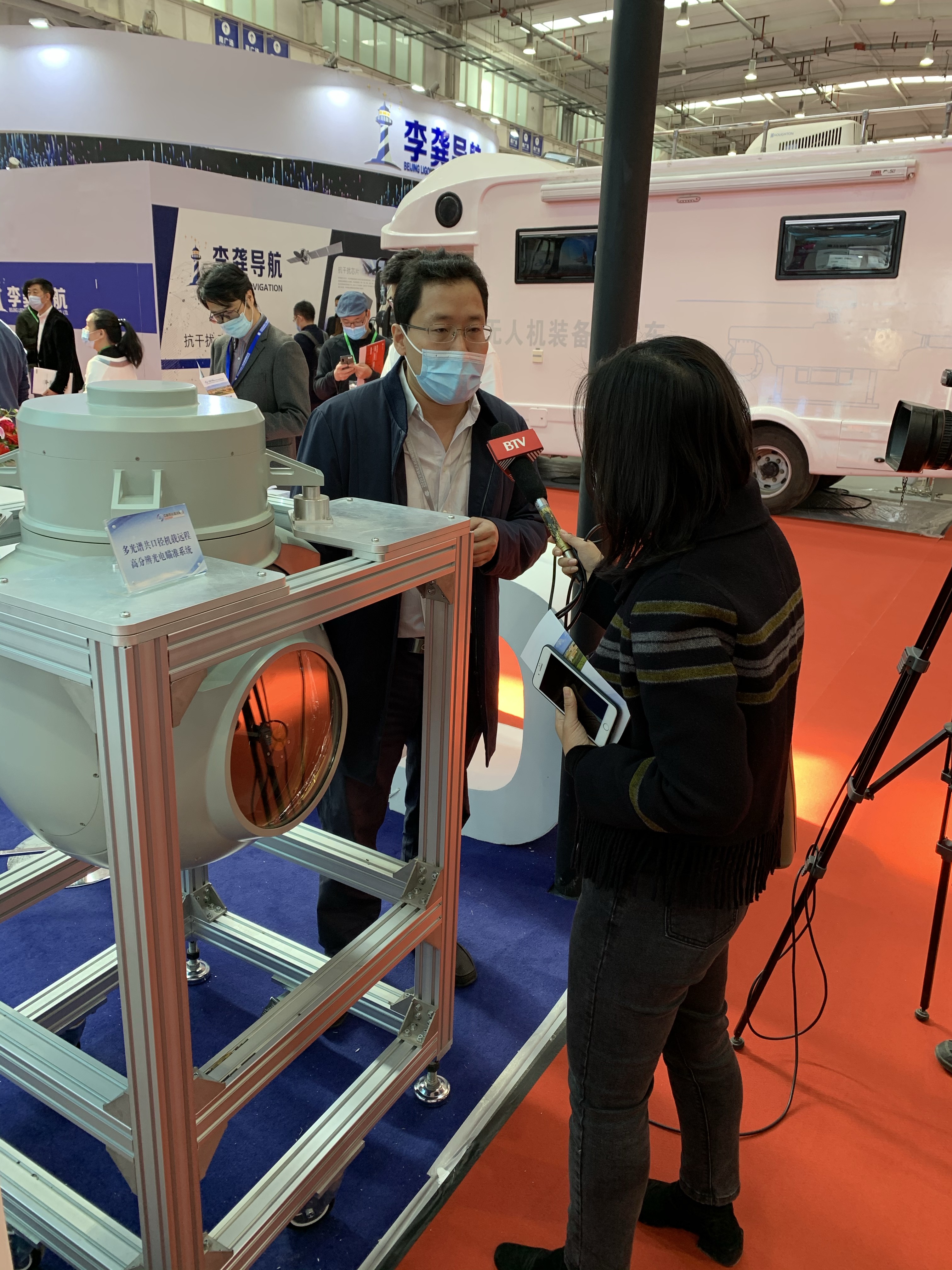 展会开幕当天,中国工程院院士郭桂蓉莅临本所展位参观指导工作。长光睿视周九飞副总经理、程志峰副研究员接受了媒体采访。