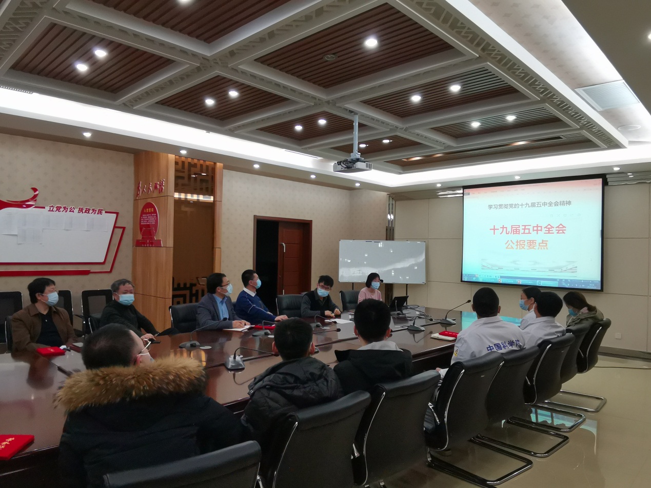 会议第三项,支部纪检委员孙慈带领与会人员深入学习了党的十九届五中全会精神。全会充分肯定了党的十九届四中全会以来中央政治局的工作,高度评价决胜全面建成小康社会取得的决定性成就,深入分析了我国发展环境面临的深刻复杂变化,并提出了到二〇三五年基本实现社会主义现代化远景目标和“十四五”时期经济社会发展主要目标。通过本次学习宣贯,与会人员进一步了解了十九届五中全会具有的全局性、历史性意义和深远性影响。与会人员结合自己的实际工作,畅谈对全会精神的理解,找准自身的定位,表示要通过工作实践进一步学思践悟,准确把握全会精神的实质和要义。