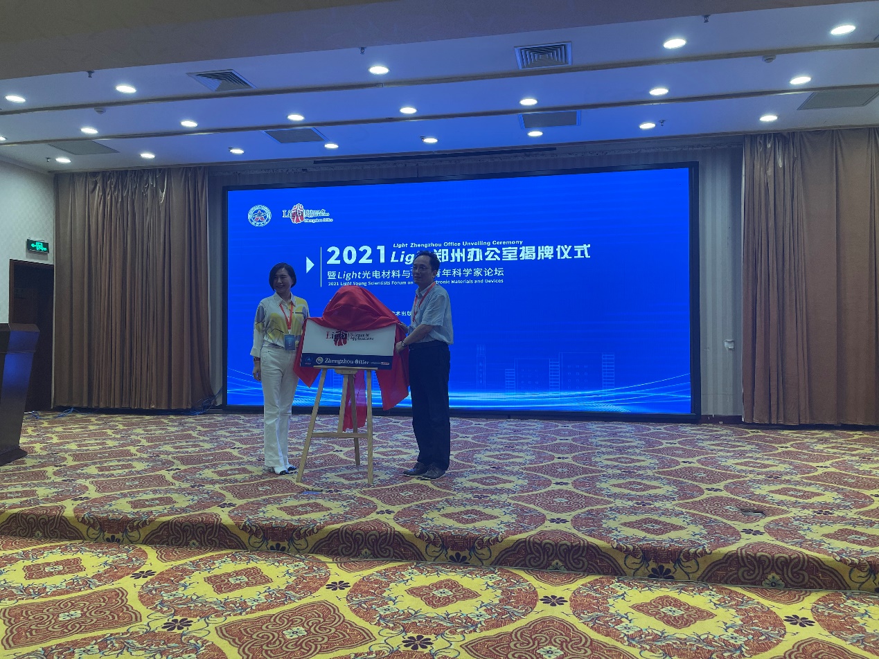 郑州大学副校长关绍康和长春光机所Light中心主任白雨虹共同揭幕Light郑州办公室