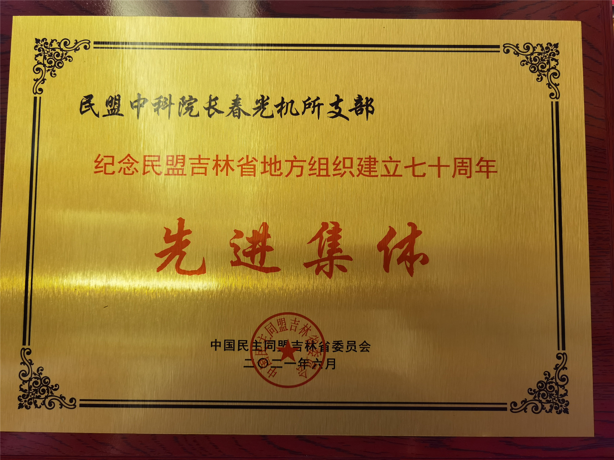 2021年6月17日上午,正值全国各族人民喜迎中国共产党建党100周年之际,民盟吉林省委在南湖宾馆会议中心组织召开民盟吉林省地方组织建立70周年纪念表彰大会。此次大会对在思想建设、组织建设、参政议政、社会服务、理论研究等方面做出突出成绩的先进集体和个人进行了表彰。民盟中科院长春光机所支部被民盟吉林省委授予“先进集体”称号。