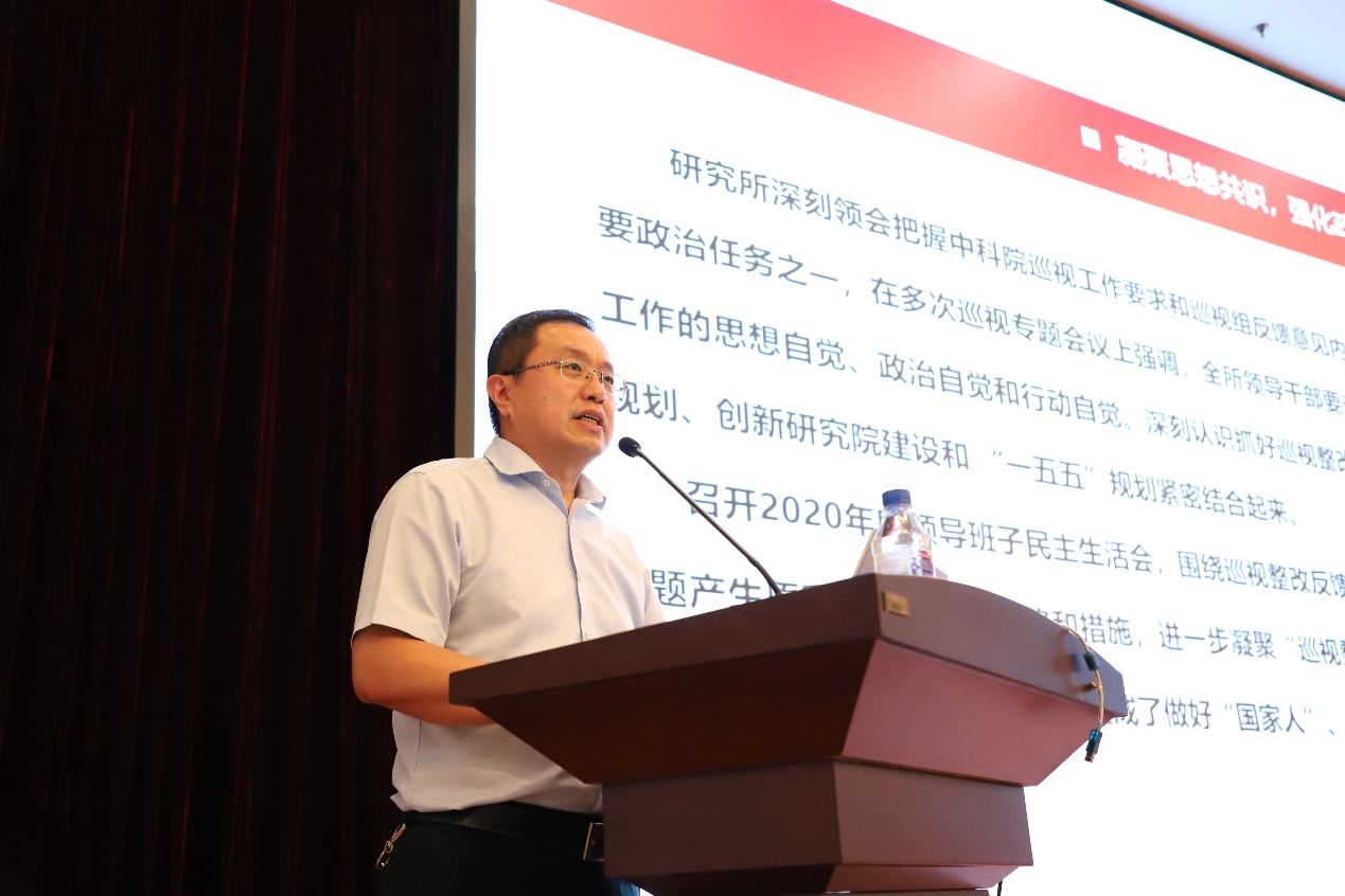 党委书记、副所长金宏代表长春光机所党政领导班子分别从巡视整改组织实施情况、台账问题整改情况、巡视整改工作成效和体会三个方面,对巡视整改工作情况进行了通报。他表示,巡视是党章赋予的重要职责,是加强党的建设的重要举措,是从严治党、维护党纪的重要手段,是加强党内监督的重要形式。长春光机所以巡视整改为契机,注重巡视整改成果运用,扎实做好巡视 “后半篇文章”,将巡视整改成效转化为研究所创新发展的动力,为长春光机所各项事业更好发展提供坚强政治保障。