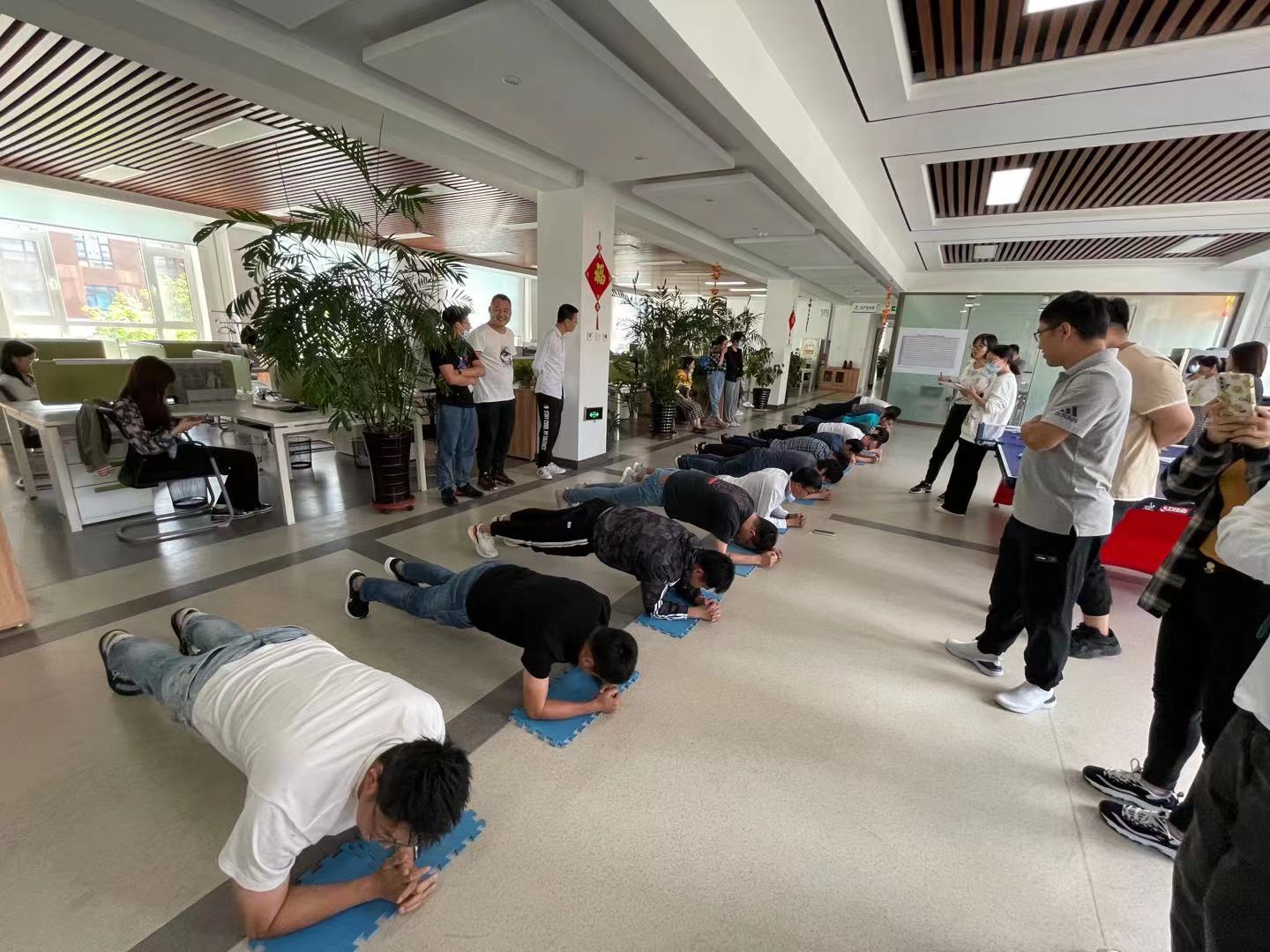 1999-2021,华大集团22岁风华正茂。近日,为庆祝这个属于所有华大人的特殊日子,由长光华大工会分会及综合管理部举办的“2021年长光华大九九健康节”活动在公司二楼运动区圆满结束,用这个特殊的形式庆祝华大集团成立22周年,用行动践行健康宣言。来自公司研发、生产、质量、管理、市场各部门的60余名员工参加了本次健康节活动。本次活动的竞赛包含了摸石头过河比赛、Plank(平板支撑)比赛、毽球比赛、跳绳比赛和乒乓球娱乐比赛,大家踊跃报名参加,比赛过程激烈精彩。