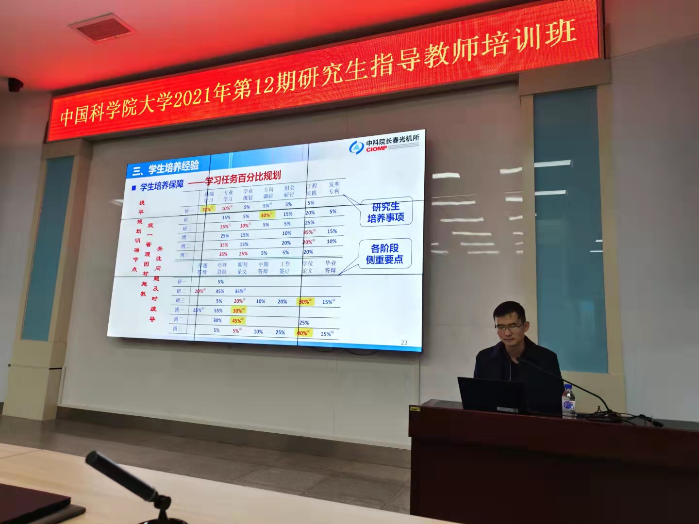 培训邀请了国科大培养与学位部部长王多君,东北师范大学研究生院副院长刘志、心理学院副教授韩雪,长春光机所空间机器人中心主任吴清文、研究生部主任方秀军、微纳光子学与材料国际实验室主任李炜、空间新技术研究部研究员杨秀彬等人作了相关主题报告。我所及中国科学院东北地理与农业生态研究所(以下简称东北地理所)共270名研究生导师参加了此次培训。
