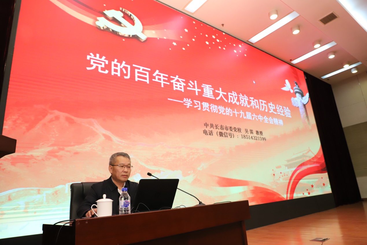 为贯彻落实党中央决策部署,深入学习贯彻十九届六中全会精神,长春光机所党委邀请吉林省委、省政府宣讲团成员、中共长春市委党校吴笛教授做专题辅导报告。吴笛对十九届六中全会《中共中央关于党的百年奋斗重大成就和历史经验的决议》的时代背景、十九届六中全会的定位与概览以及全会的主要内容进行了讲解。党的十九届六中全会总结了党的百年奋斗的重大成就和历史经验,《中共中央关于党的百年奋斗重大成就和历史经验的决议》是一篇光辉的马克思主义纲领性文献,是新时代中国共产党人牢记初心使命、坚持和发展中国特色社会主义的政治宣言,是以史为鉴、开创未来、实现中华民族伟大复兴的行动指南。与会人员深刻认识党的十九届六中全会的重大意义,准确理解和把握“十个坚持”的宝贵历史经验,更加坚定、更加自觉地践行初心使命,在新时代更好坚持和发展中国特色社会主义。