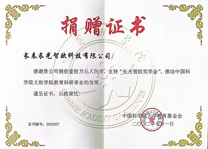 在长春光机所迎来建所70周年之际,长春长光智欧科技有限公司(以下简称“长光智欧”)与中国科学院大学教育基金会签署协议,面向长春光机所在学研究生设立“长光智欧奖学金”,这是继长春新产业光电技术有限公司、长春长光辰芯光电技术有限公司之后,长春光机所又一投资企业为研究生设立的专项奖学金。