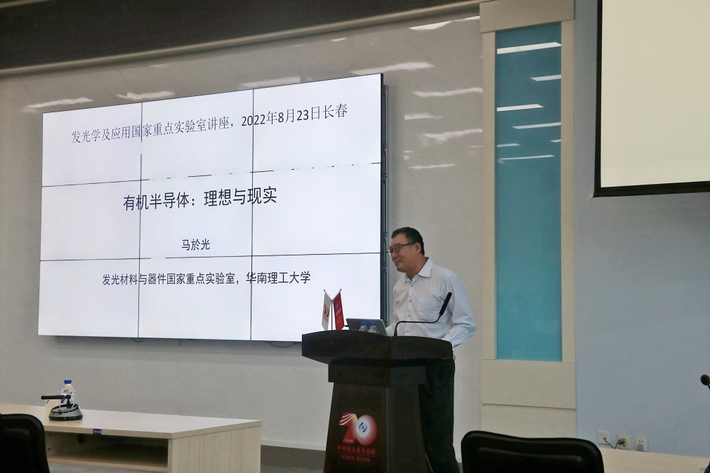 发奋图强,激流勇进探流明;光耀前行,发挥优势建功勋。值此中科院长春光机所建所70周年系列学术活动之际,长春光机所发光学及应用国家重点实验室主任赵东旭邀请了华南理工大学发光材料与器件国家重点实验室主任马於光于8月23日来所做了题为《有机半导体—理想与现实》的学术报告。报告由赵东旭主持。