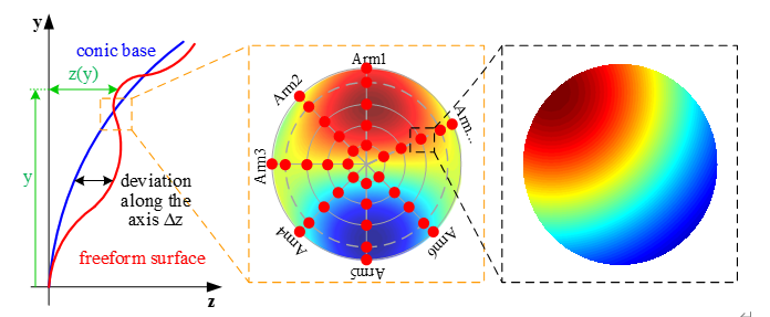 光学自由曲面凭借其丰富的设计自由度,使其具有强大的像差能力,目前已在多类型先进光学系统中得到应用。然而,目前关于光学自由曲面的多数研究,仍然集中于如何应用其提高光学系统的成像质量,而没有考虑这些光学系统的可实现性。误差敏感度是衡量一个光学系统能否从理论设计到实现的重要指标。因此,如何在保证自由曲面光学系统成像质量的同时,降低光学系统的误差敏感度是一个亟需解决的问题。