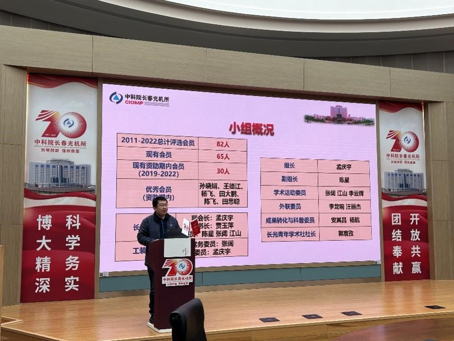 首先,青促会长春光机所活动小组组长孟庆宇对2022年度的各项工作进行了总结汇报。2022年,活动小组在面对上半年有疫情封城的情况下,克服困难,组织了多种形式的学术交流活动。7月,青促会活动小组赴FAST及地化所展开学术交流活动; 8月,举办中国科学院青年创新促进会工程与装备分会青年学者论坛,邀请二十余家单位的两百多名知名学者专家参会,同时组织博士生论坛进行学术交流、所内参观和政策宣讲;10月,青促会活动小组联合中国光学出版长春光机所七十周年所庆青促会青年学者专刊;12月,召开中国科学院青年创新促进会长春分会2022年学术年会,长光所青促会活动小组作为承办单位之一,在会上召开光电信息应用论坛。活动小组各会员也充分结合自身领域工作开展了多个学术交流活动,并在项目争取、学术任职、科技奖励、文章专利等方面取得丰硕成果。