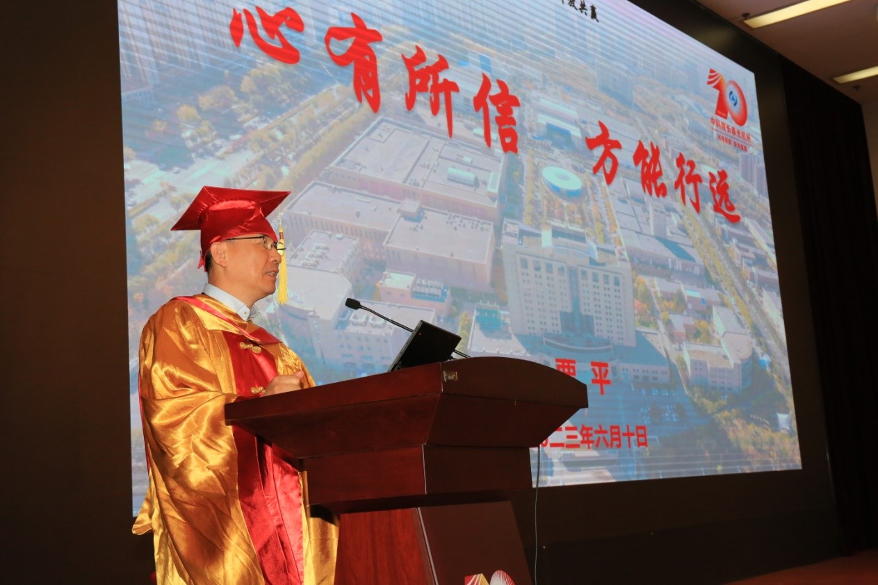 在热烈的掌声中,贾平发表讲话,寄语毕业生同学“心有所信,方能行远”。