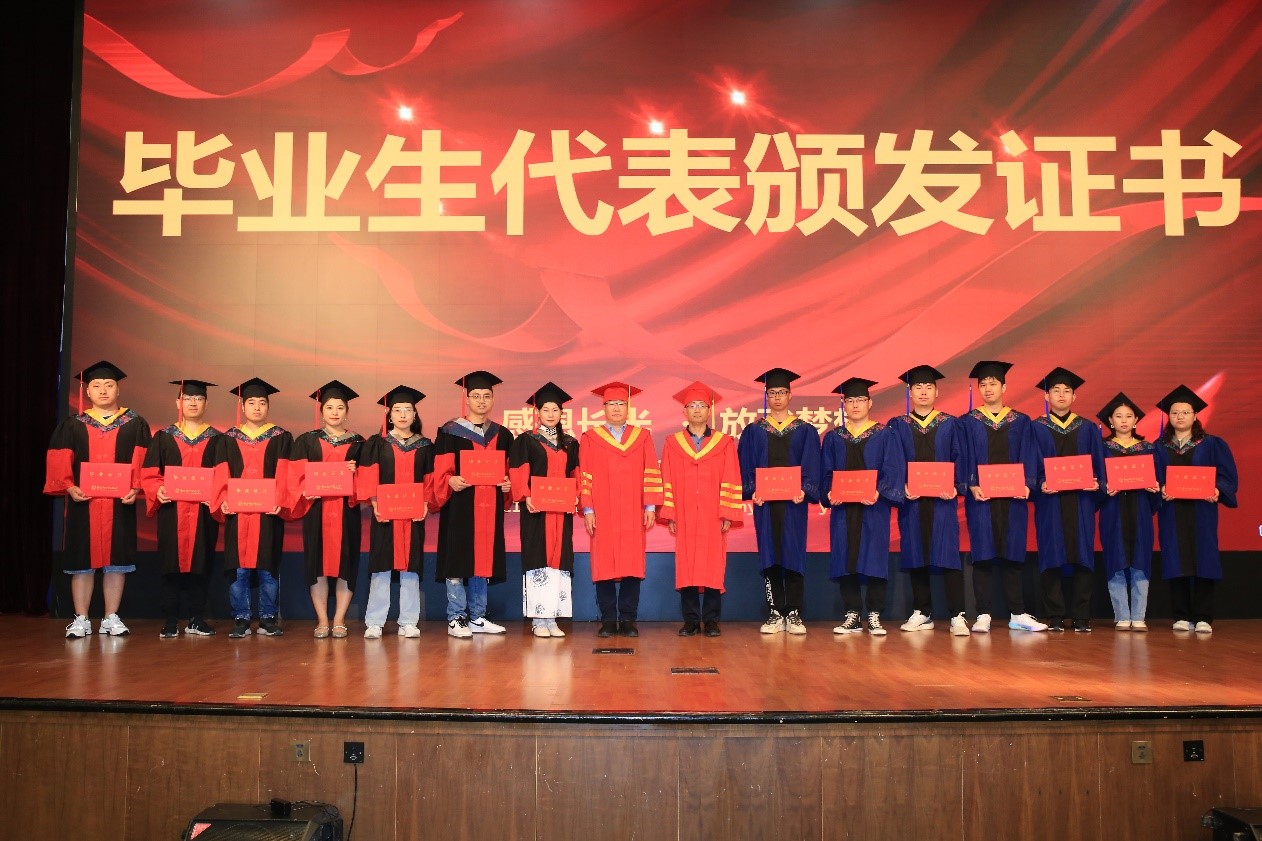 随后,方秀军宣读2023届优秀毕业生名单,张学军和张涛为国科大优秀毕业生颁发荣誉证书;孙焕和李耀彬为毕业生代表颁发证书。