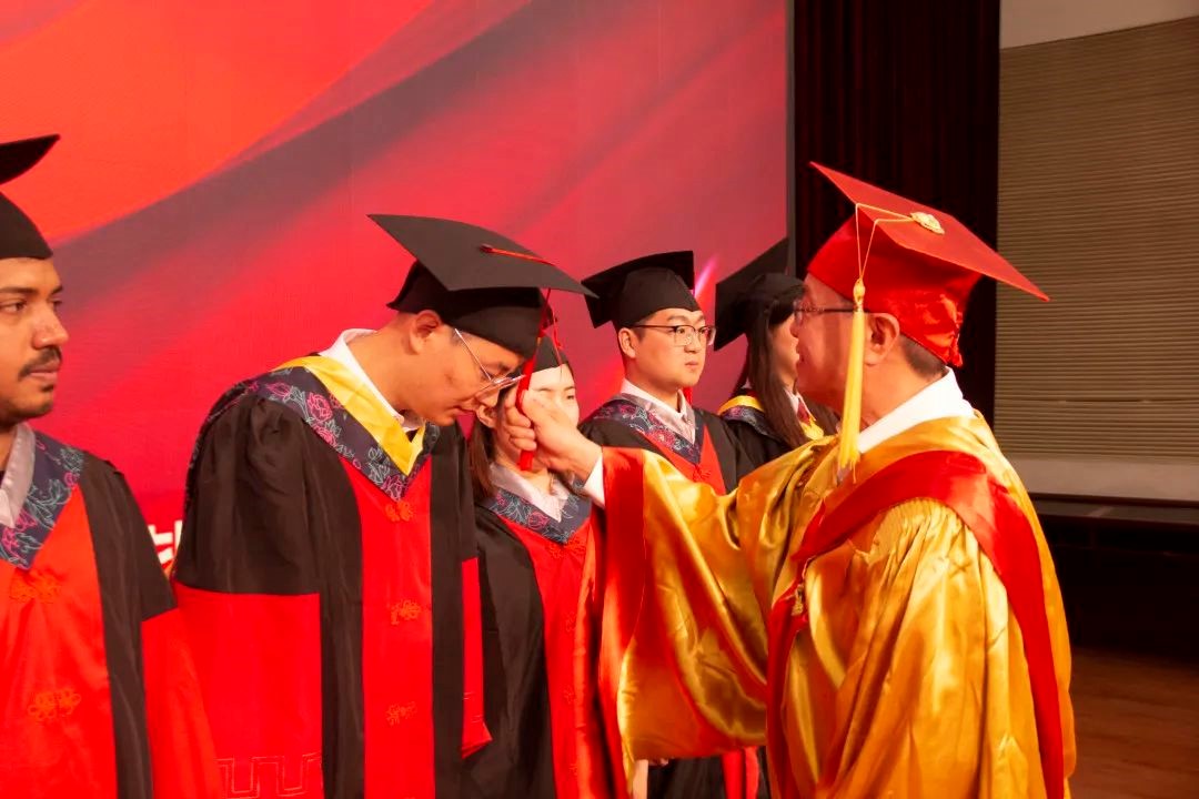 贾平所长和金宏书记为毕业生扶正流苏,开启未来新征程。