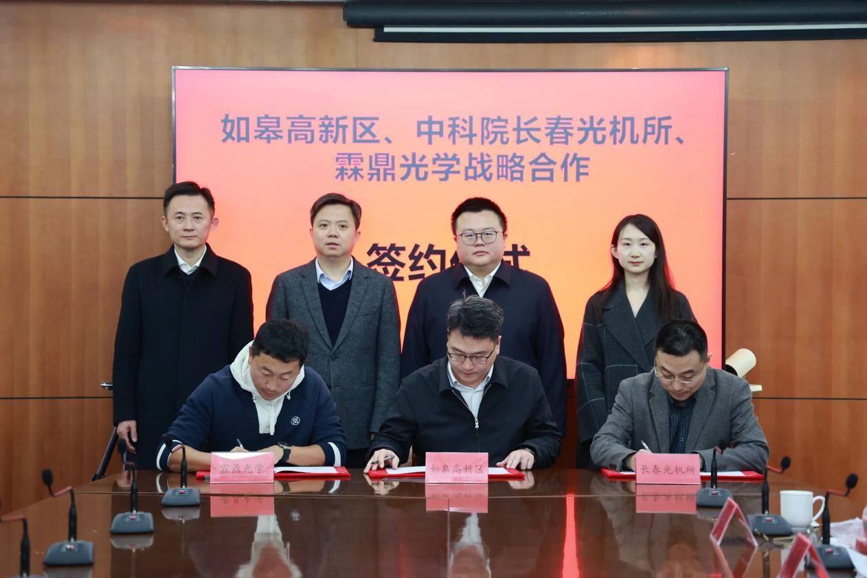 如皋市委副书记、市长王鸣昊,如皋市委常委、副市长、高新区党工委书记陈鸣华,中国科学院长春光机所Light学术出版中心主任、党支部书记张莹,Light:Advanced Manufacturing编辑部主任兼Light:Science&Applications科学编辑郭巳秋、Light:Science&Applications科学编辑臧春秀,霖鼎光学(江苏)有限公司CEO张哲等出席签约仪式并进行了深入交流。