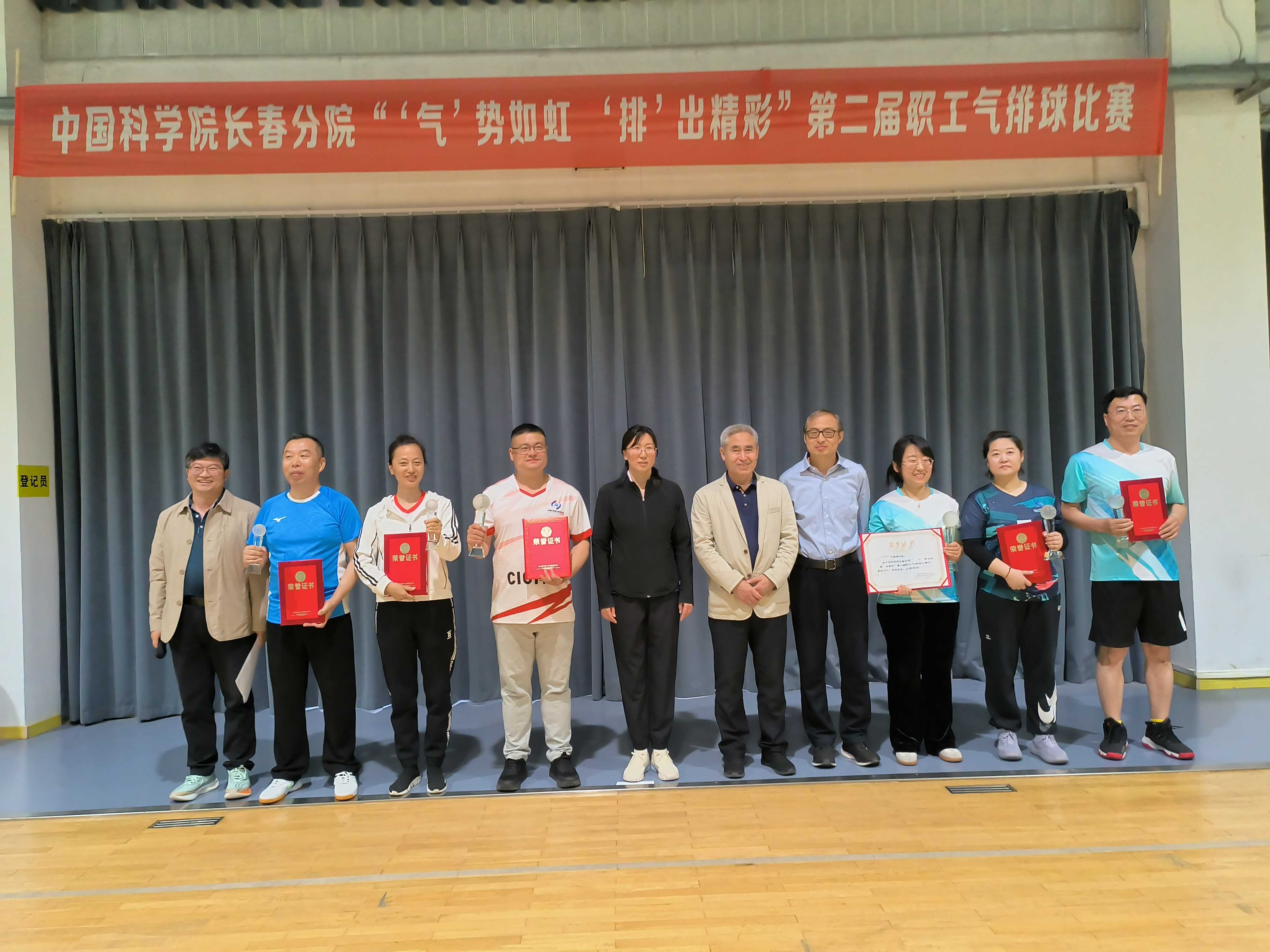5月11日,由中国科学院长春分院工会主办的“‘气’势如虹 ‘排’出精彩”第二届职工气排球比赛在东北地理所体育馆举行,长春光机所以排球协会为基础选派男、女各一支队伍参加比赛。