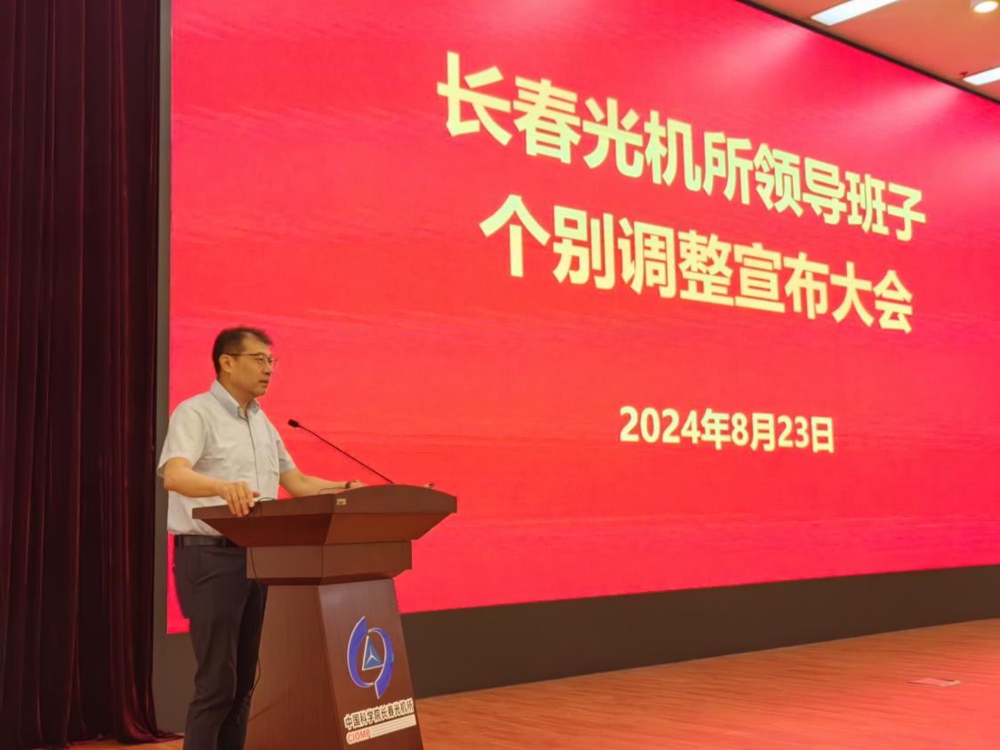 8月23日上午,中国科学院长春光机所领导班子个别调整宣布大会在研发大厦东报告厅召开。长春分院分党组书记副书记王晓慧,人事人才处处长彦飞出席会议,长春光机所领导班子成员、党委委员、纪委委员、各部门正副职等100余人参加会议。