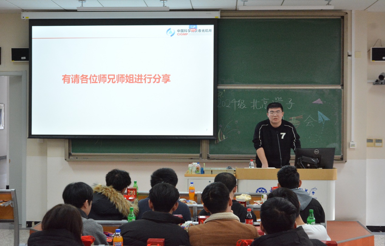 随后乔善同等相继上台进行了自我介绍和经验分享,他们结合自己的学习、科研和研究生会经历,为北京集中教学同学们分享了在长春光机所的生活,提供建议、送去鼓励。