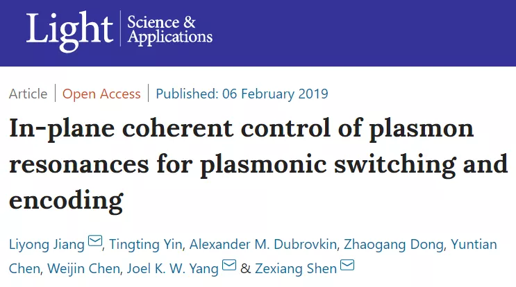 2019年3月,《Light:Science&Applications》杂志上发表了来自于南京理工大学蒋立勇教授团队的最新研究成果,研究人员提出一种新方法,实现了表面等离激元空间编码功能,从理论上为多功能、多自由度调控的光子芯片的应用开发助力,让人们距离光子芯片更近一步。