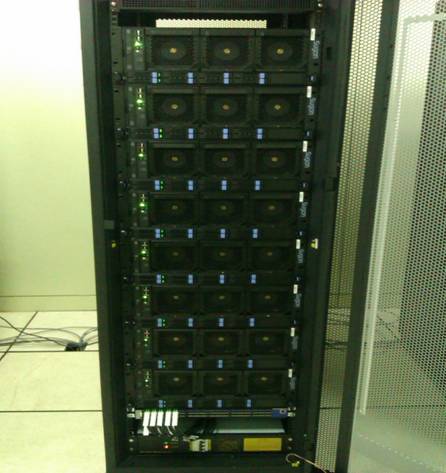该系统采用刀片集群架构,使用的AMD8核处理器是AMD公司刚刚发布的,目前全世界单个处理器核心数最多的产品。系统共配置2.6624TFLOPS的计算能力。针对部分应用对节点间网络需求高,配置了高带宽,低延时的QDR Infiniband网。带宽达到40Gbps,延时小于1.5us。
